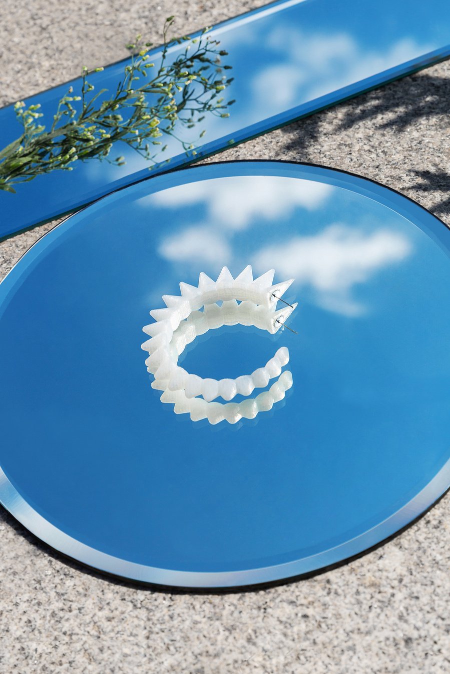 JAW Studio Spike Hoop Earrings. Attached to hypoallergenic surgical-grade stainless steel posts. Assembled and finished by hand. Available in two different 3D printed materials: